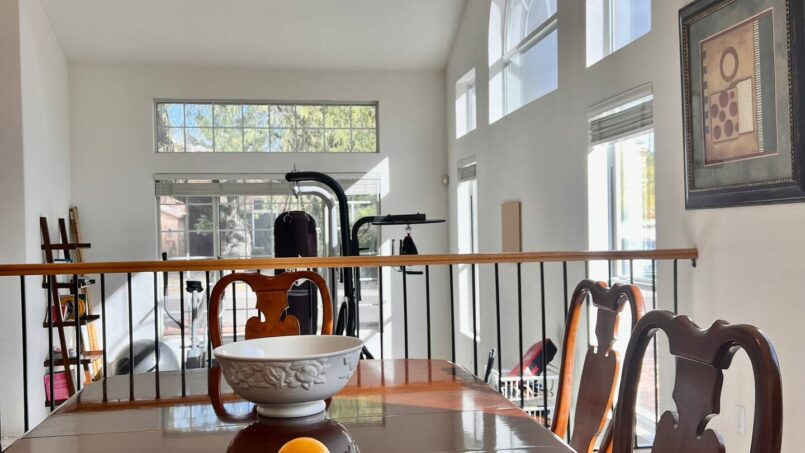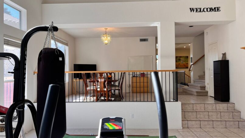 A private gym area equipped with a punching bag and speed bag