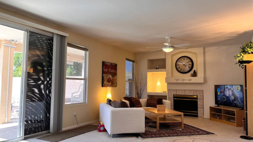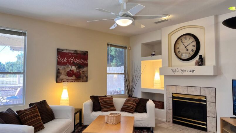 A comfortable family room with a 55″ 4K Smart TV