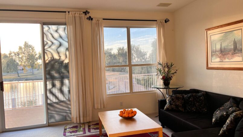 A comfortable family room with a 55″ 4K Smart TV